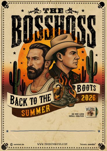 „Back To The Boots“ ist eine Hommage an die eigenen Anfänge: musikalisch, stilistisch und live. Ihr Sound: moderner, international inspirierter Country-Rock mitten im aktuellen Genre-Revival, das Acts wie Beyoncé, Post Malone oder Shaboozey gerade weltweit feiern. The BossHoss surfen dabei authentisch und mit viel Spielfreude ganz vorne auf dieser Welle und bringen ihren unverwechselbaren Mix aus Country, Americana und Southern-Rock mit. Natürlich inklusive der spektakulären Single „I’ll Be Back“ mit Arnold Schwarzenegger.